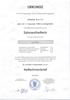 Assistance at dental medical treatments, sterilization of used tools and documentation of medical positions according to Bema. Dampsoft was used as dental medical software. Did casts from imprints in own dental laboratory. Theoretical training in school for Dental Assistants.