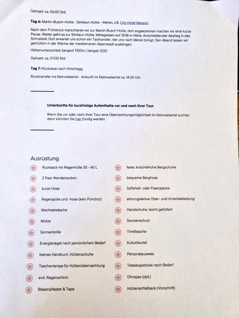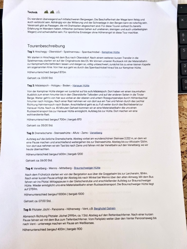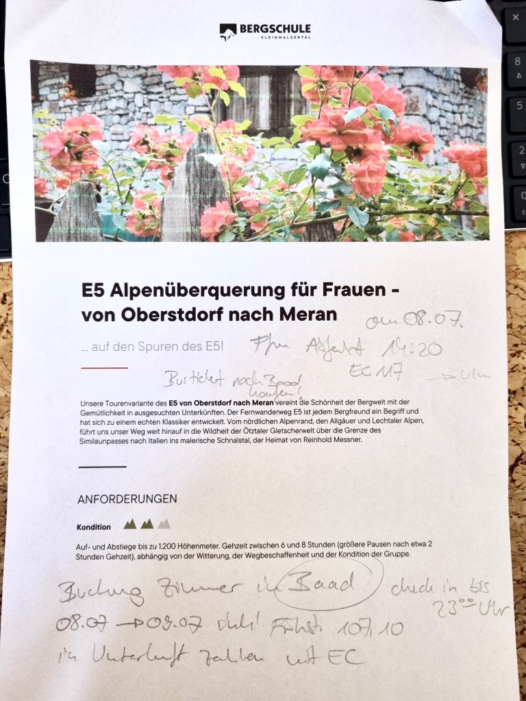 In 2021 I decided to do a mountain hike just with a backpack. I haven’t had a hiking partner, so I searched for a hiking group to join. Start of the hiking experience was 09.07.2022 from Oberstdorf. The plan was hike the E5 path to Meran in Italy, sleep-over in hotels and alpine huts and taxi transfers in other regions.